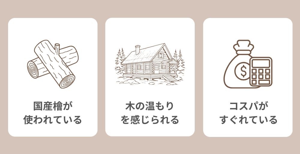 国産檜を使った家づくりをしているので、ほかでは味わえない木の香りに包まれた暮らしができるでしょう。