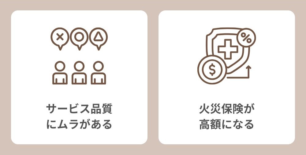 一方で、家づくりの特徴から保証期間が異なったり、火災保険料が高くなる可能性があったりなどのデメリットがあります。
