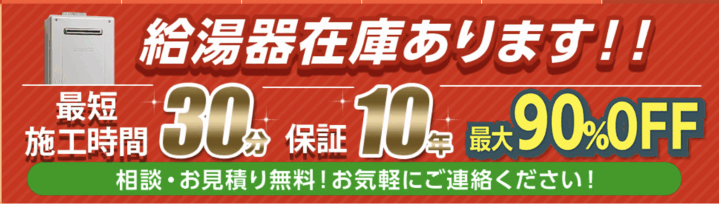 また、給湯器は価格競争が激しく、8~9割引きで提供する会社も。