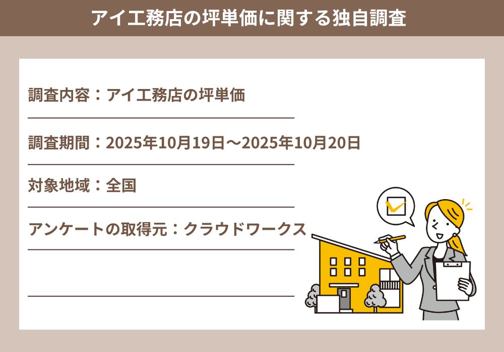 当メディア「THE ROOM TOUR」で独自調査をおこなった結果、アイ工務店の坪単価は60~87.5万円とわかりました。