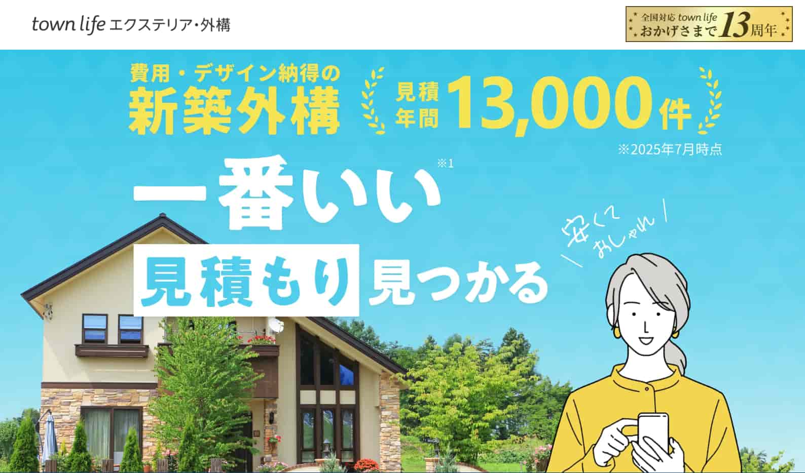 タウンライフ外構は、スマホで検討中の外構に関するカンタンな質問に答えるだけで、複数社から提案を受けられるサイトです。