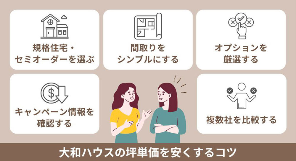 また、大和ハウスの坪単価を安くするコツは、以下のとおりです。