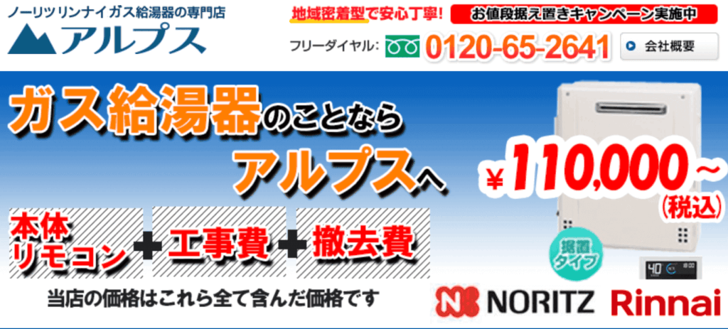 | 取り扱いメーカー | ノーリツ・リンナイ・パーパス・パロマ・ハウステック・タカラ・コロナ、長府製作所、長府興産 etc |