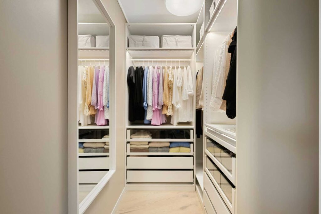 ウォークスルータイプにできない場合は、収納スペースを区分けして整理整頓しておくとよいでしょう。