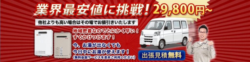 また、給湯器は価格競争が激しく、8~9割引きで提供する会社も。