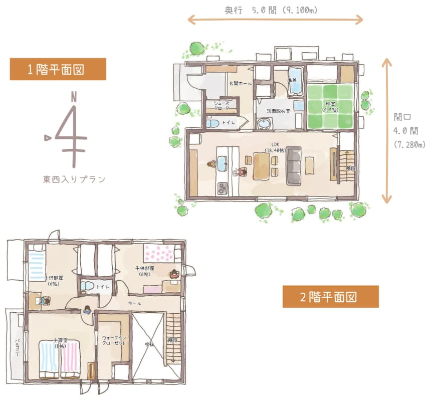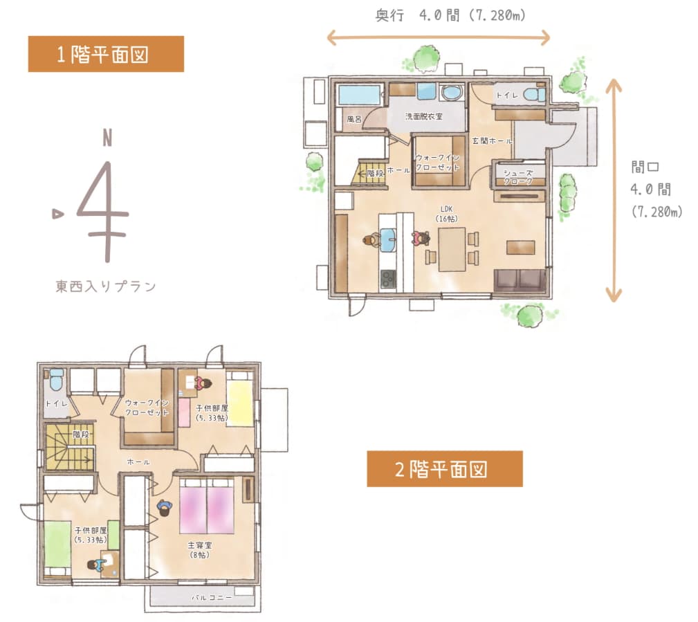 ②吹き抜けが気持ちいい間取り実例(W36-4050-0004)