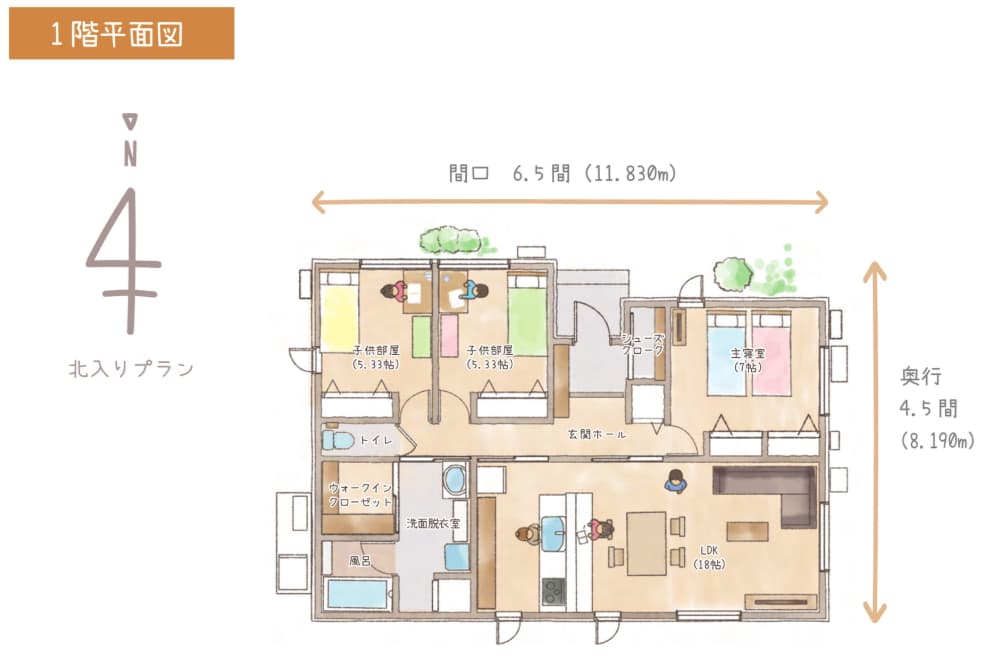 2階建てでありながら、老後は1階だけで完結できそうな間取りだね!