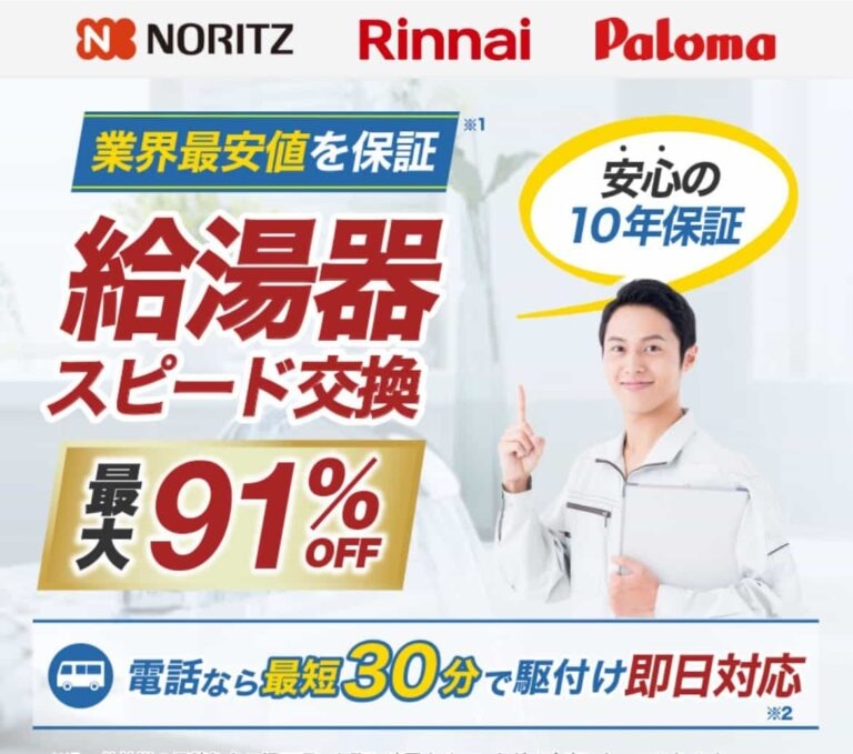 また、給湯器は価格競争が激しく、8~9割引きで提供する会社も。