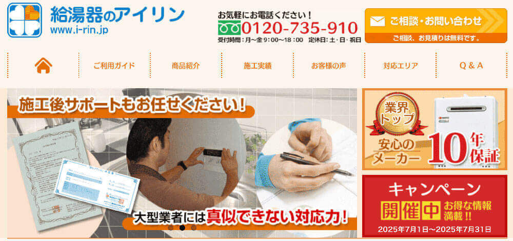 - ガス会社や給湯器メーカーに劣らない充実したサービス
