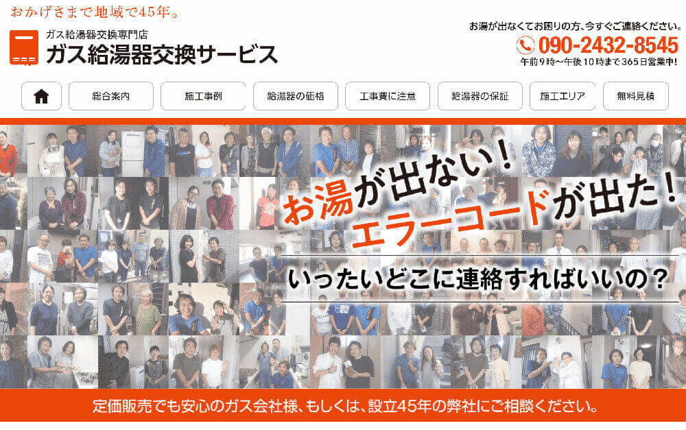 - 多種類の給湯器メーカーを扱っている