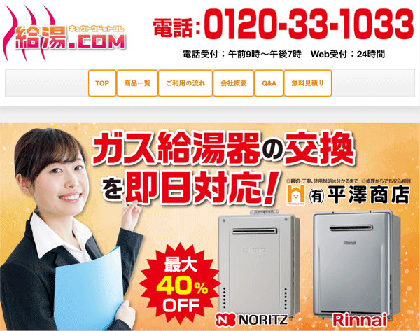 給湯器大手メーカーである「NORITZ」「Rinnai」「paloma」を扱っている会社が多いですよ♪