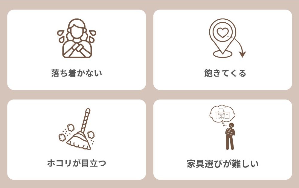 とくに、家具へのこだわりが強かったり、インテリアのトータルコーディネートが苦手だったりする方にとっては、大きなストレスになりやすいです。