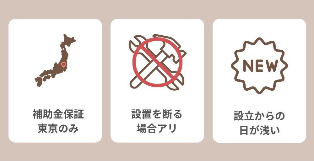 一方、補助金の保証については、基本的には東京都のみが対象となることに注意が必要です。