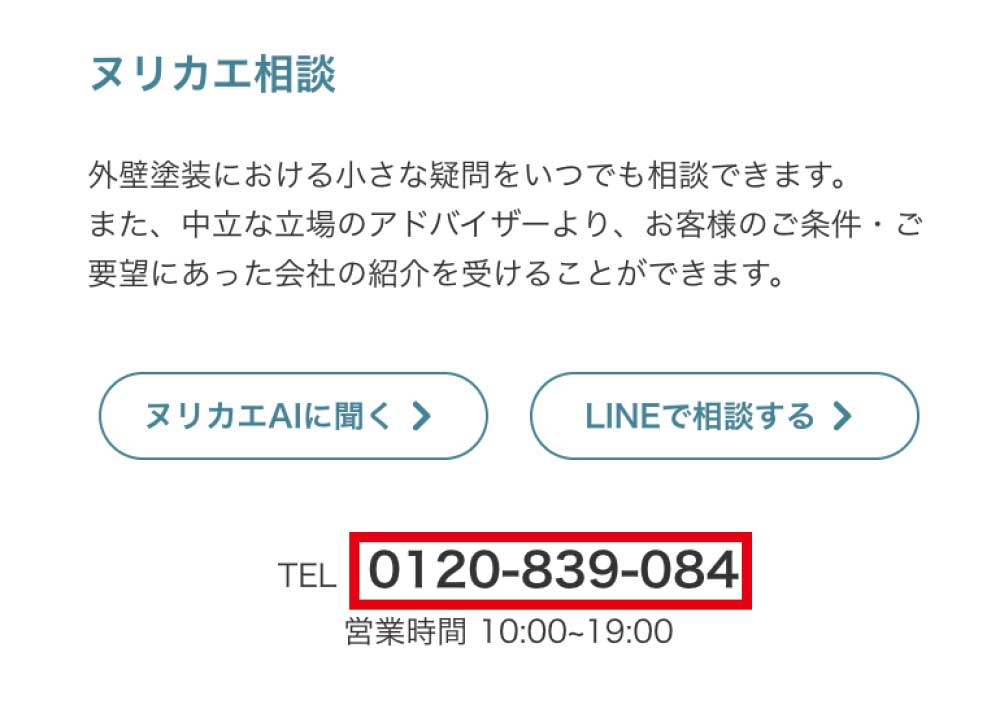 ヌリカエ公式サイトに掲載されている電話番号です。(2026年2月時点)
