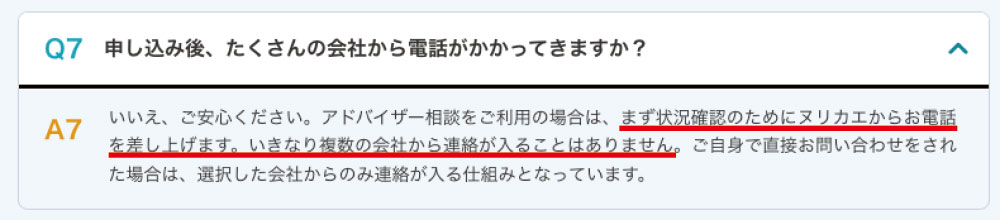 ヌリカエを利用した場合、まずは状況確認の電話が入り、その内容をもとに紹介が進みます。