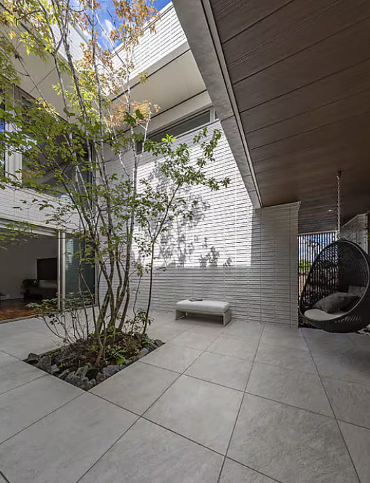 中庭にはシンボルツリーとハンギングチェアがあり、プライバシーを確保しながら外の空気を感じることができます。