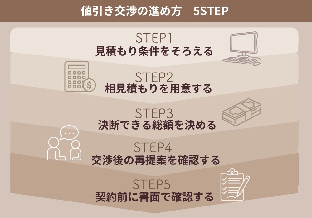 そのため、値引き交渉は段階を踏んで進めるのがおすすめですよ!