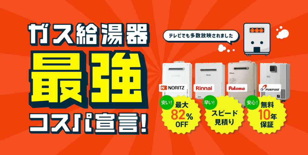 | 取り扱いメーカー | ノーリツ・リンナイ・パーパス・パロマ・ハウステック・タカラ・コロナ、長府製作所、長府興産 etc |
