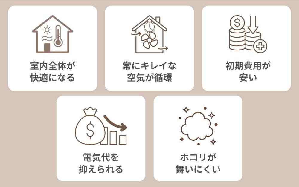 全館空調システムは、室内温度を均一にする設備であることは共通していますが、タイプによって細かく機能が違いますからね!