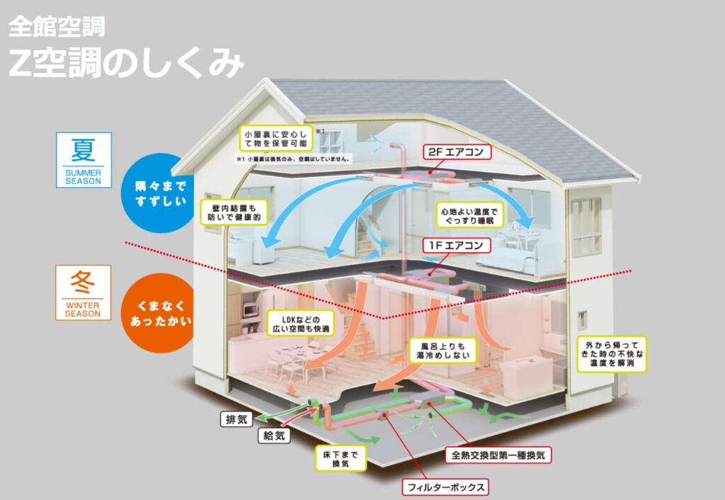 Z空調とは、ヒノキヤグループが提供する全館空調システムのこと。