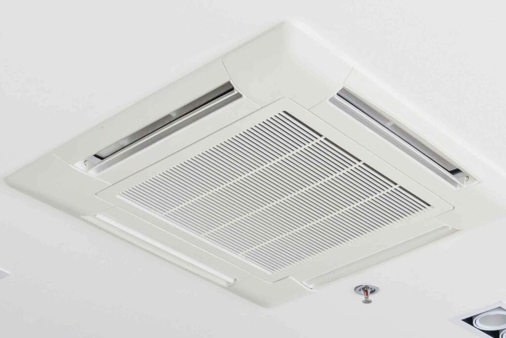 Z空調は、フロアごとに設置されている、天井埋込形エアコンからダクトを通じて空気を循環させる仕組みになっています。