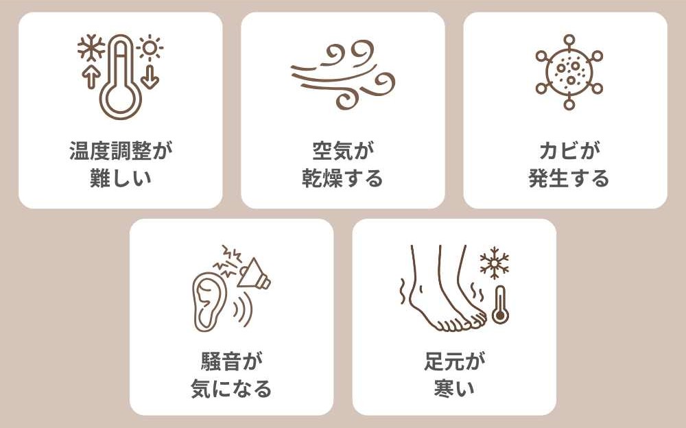 大前提、室内全体が均一に温まり暮らしの満足度が高くなる設備ではありますが、人によっては不満を感じるかもしれません。